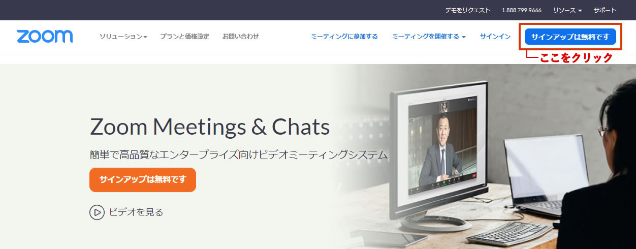公式サイトにアクセスしたら、右上にある「サインアップは無料です」というボタンをクリックしましょう。